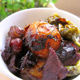 原料:五花肉 、萝卜 、灯椒 、姜片、甜面酱、豆瓣酱、老干妈豆豉辣酱、冰糖、料酒、老抽、花椒粉、稻米油。
