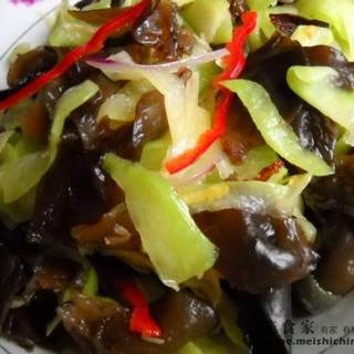原料:厚瓜皮、黑木耳、红椒、洋葱、蒜、油、盐。