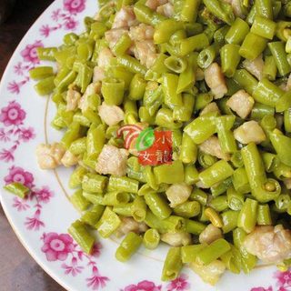 原料:酸豆角、猪肉、玉米淀粉、清水、生抽。