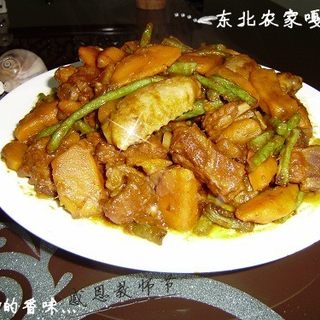 原料:茄子、土豆、青椒、葱、姜、蒜、酱油、美极鲜、糖、五香粉、盐。