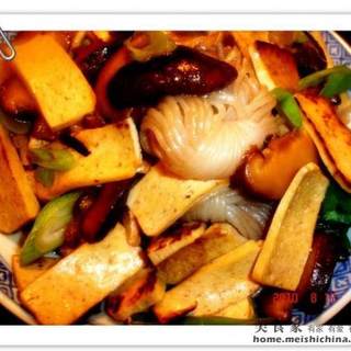 原料:白干、冬菇、魔芋丝、葱花、姜丝、蚝油。
