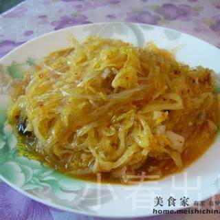原料:酸菜、粉丝、猪肉、大料、干辣椒、姜丝、盐、鸡精、味极鲜。
