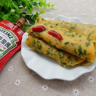 原料:韭菜、玉米面、中筋面粉、亨氏番茄酱。