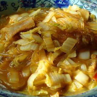 原料:酸菜、五花猪肉、粉条、葱姜、干辣椒、花椒、八角、盐。