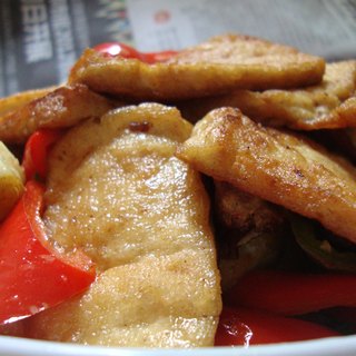 原料:手工豆腐、红辣椒、青辣椒、大蒜、姜、盐、老抽、鸡精、白糖、油。