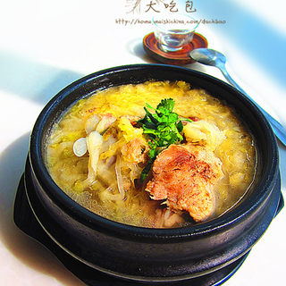 原料:大骨、酸菜、葱、花椒大料、精盐、鸡精、白酒、花椒粉、姜。
