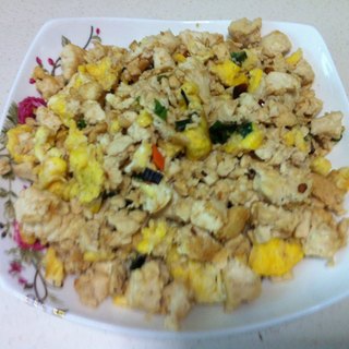 原料:鸡蛋、豆腐、干辣椒、食用油、盐、生抽、葱末。