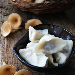 原料:猪肉馅、野生山蘑、中筋面粉、六月鲜、盐、白胡椒粉、葱姜水、食用油。