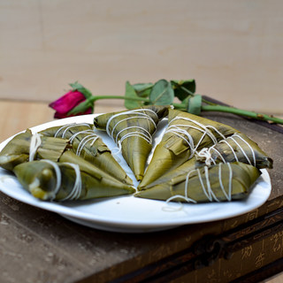 原料:糯米、大米、蜜枣、豆沙、粽叶。