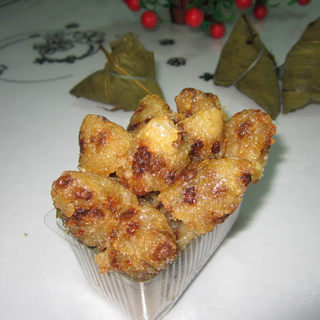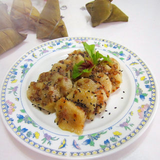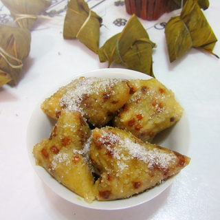 原料:冷粽子、白糖。