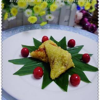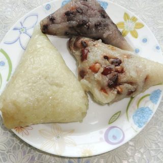 原料:糯米、红豆、紫米、蜜枣、红枣、白砂糖、粽叶。