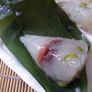 原料:带皮五花肉、香叶、糯米、粽叶、棉线、红烧汁、白糖、冰糖。