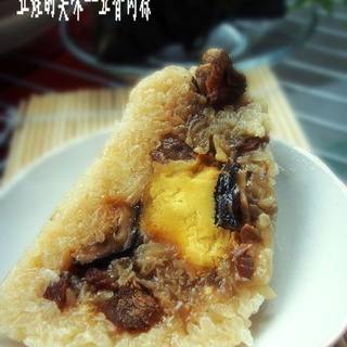 原料:猪梅花肉、鸭蛋黄、洋葱、粘米、干香菇、盐、五香粉、酱油、老抽、姜片、葱段、柠檬汁。
