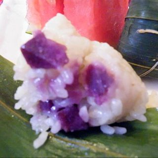 原料:小西米、小紫薯、豌豆、红豆、粽叶、橄榄油。