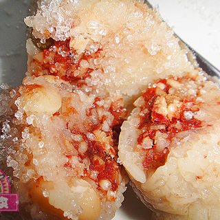 原料:红豆、小牛颈肉、香菇、糯米、白糖、红糖、桂花糖、绍兴酒、生抽。