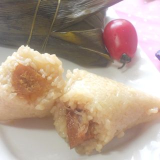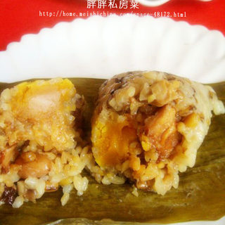 原料:糯米、五花肉、咸蛋黄、鸡精、鲜酱油、盐。