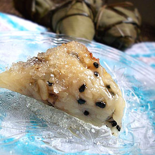 原料:黑米、糯米、花生、红枣、砂糖、粽叶、棉线、水。