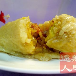 原料:糯米、粽叶、马兰草绳、金华火腿、鲜香菇、蜜乌梅、蜜枣、葡萄干、杏干、青红丝、核桃仁、瓜子仁、红小豆、绿豆、干枣。