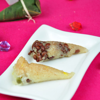原料:红豆、白糖、糯米、粽叶、棉线。