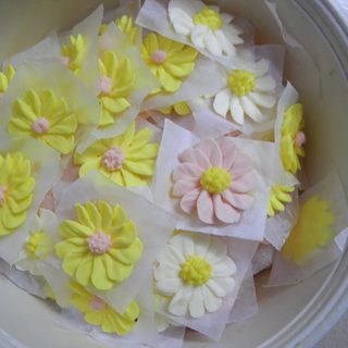 原料:多美鲜无盐黄油、蛋清、白砂糖、色素、清水、白砂糖。