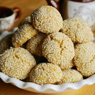 原料:低粉、鸡蛋、花生酱、泡打粉、盐、芝麻、糖。