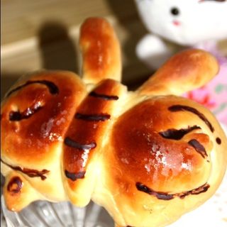 原料:高筋面粉、牛奶、细砂糖、无盐黄油、鸡蛋液、蜂蜜水、可可粉、酵母、盐。