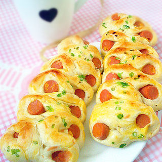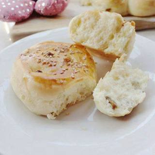 原料:饺子粉、汤种、水、酵母、玉米油、奶粉、鸡蛋、火腿肠、葱末、白糖、盐。