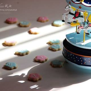 原料:黄油、糖粉、低筋面粉、盐、蛋液、糖粉、蛋清、柠檬汁、翻糖膏。