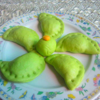 原料:面粉、萝卜、精肉、黑芝麻粉、黑葡萄干、酵母、大蒜叶、盐、料酒。