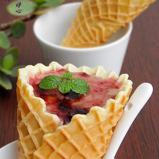 原料:鸡蛋、低粉、食用油、香蕉、希杰大喜大蓝莓酱、糖粉。