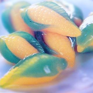 原料:糯米粉、粳米粉、豆沙馅、橙汁、菠菜汁、盐。