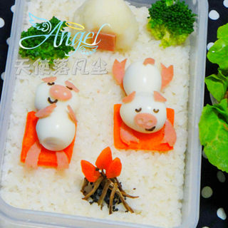 原料:米饭、油、盐、鹌鹑蛋、土豆、西兰花、胡萝卜、午餐肉、海苔、小番茄、大虾、牛肉、草菇、生菜、红烩料、茶树菇梗、料酒、鸡精。