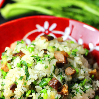 原料:芥菜、糯米、虾米、酱肉、水发香菇、盐、料酒、鸡清、葱。