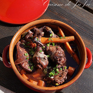 原料:红酒、鸡、洋葱、蒜、胡萝卜、芹菜、蕃茄膏、鸡汤、月桂叶、百里香叶、葱、黑胡椒、盐、油、黄油、面粉。