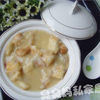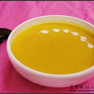 原料:南瓜、青苹果、牛奶、铁塔淡奶、橄榄油、胡椒粉、盐、美极奶油浓汤。