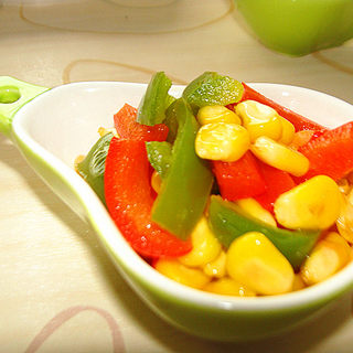原料:玉米粒、绿甜椒、红甜椒、盐、糖。