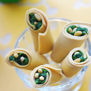 原料:厚百叶、松仁、菠菜、盐、芝麻油、糖、生抽。