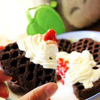原料:糖、黄油、蛋白、蛋黄、黑巧克力、低筋面粉、奶油(装饰用)、草莓酱。