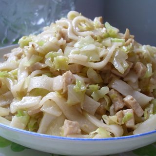 原料:牛肉、包菜、粿条、酱油、盐、调和油。