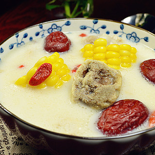原料:棒骨、玉米、现磨原味豆浆、红枣、枸杞、盐、鸡粉。