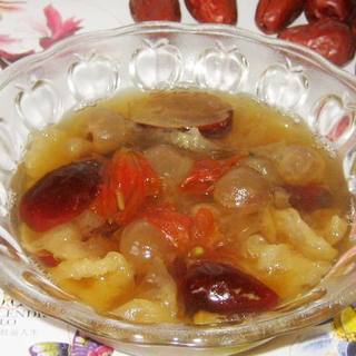 原料:银耳、枸杞、红枣、百合、冰糖。
