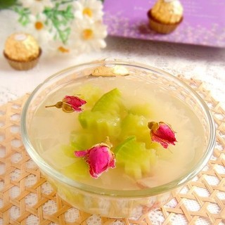 原料:水果萝卜、银耳、干玫瑰花、冰糖。