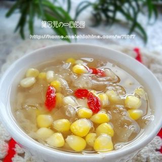 原料:银耳、玉米粒、枸杞子、冰糖。