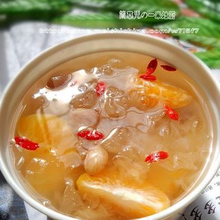 原料:银耳、蜜橘、花生、枸杞子、冰糖。