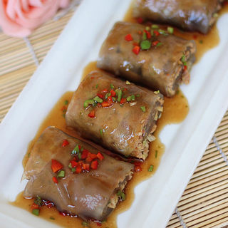 原料:红薯淀粉、猪肉七分瘦三分肥、葱、姜、老抽、蚝油、盐、虾、白菜、青红椒、鸡蛋。