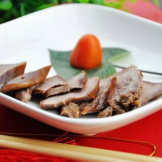 原料:猪舌头、老卤汁、红干辣椒、酱油、料酒。
