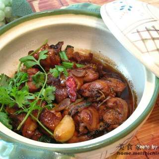 原料:鸡、麻油、酒、酱油、萝勒叶、葱、干辣椒、姜、蒜、香菜。