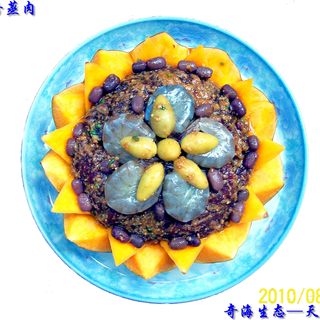 原料:南瓜、红豆、白扁豆、蚕豆豆瓣、白果、牛肉、番茄沙司、蚝油、甜面酱、葱、老姜、花椒粉、麻辣粉、五香粉、六月鲜、盐、橄榄油、香油、味精。