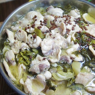 原料:草鱼、酸菜、野山椒、鸡蛋清、花生油、淀粉、料酒、胡椒粉、花椒、大茴、姜。