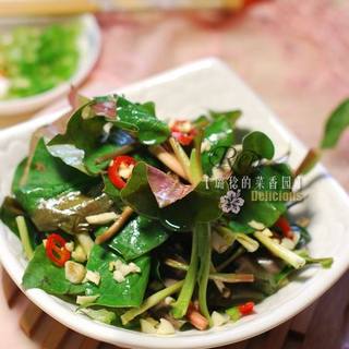 原料:新鲜折耳根、大蒜、小米辣、盐、美极鲜调味汁、醋、香油、辣椒油、鸡精。
